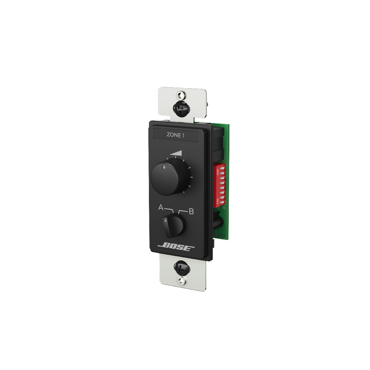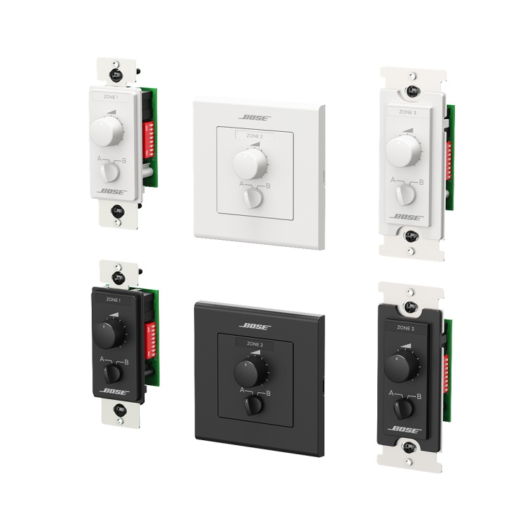 Os controladores de zona Bose Professional ControlCenter CC-2 fornecem seleção de volume e fonte A/B para produtos FreeSpace e ControlSpace. Três modelos estão disponíveis em preto ou branco e se encaixam em caixas elétricas de 1 gangue na América do Norte, Europa e Japão.